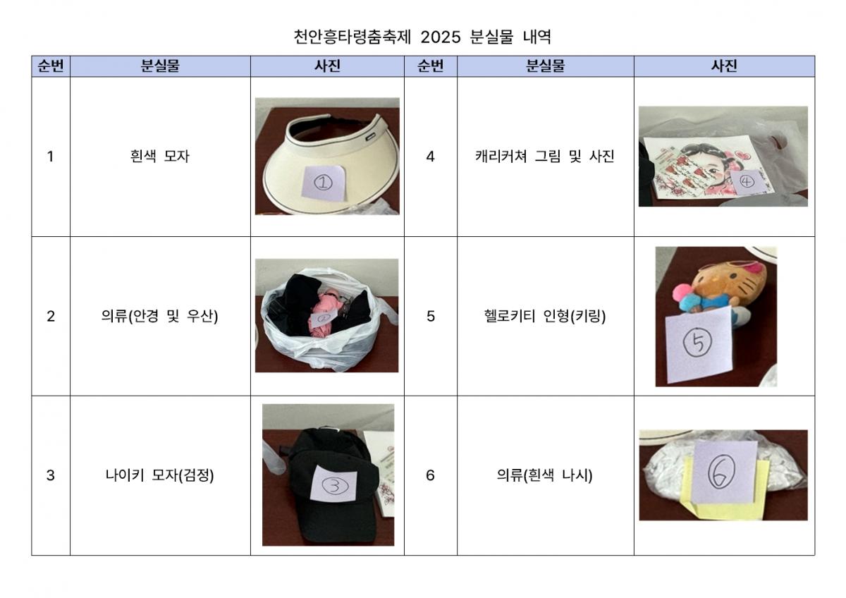천안흥타령춤축제 2025 분실물 문의는 연락 바랍니다.