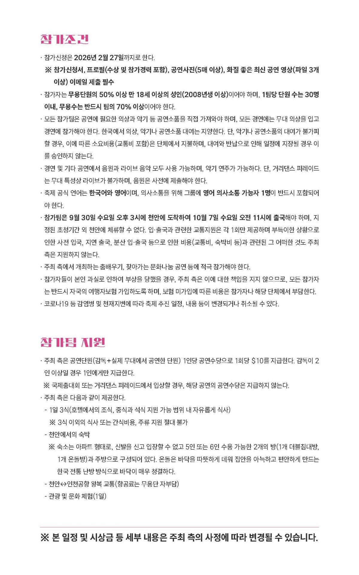 [천안흥타령춤축제2026] 국제춤대회 참가팀 모집 안내