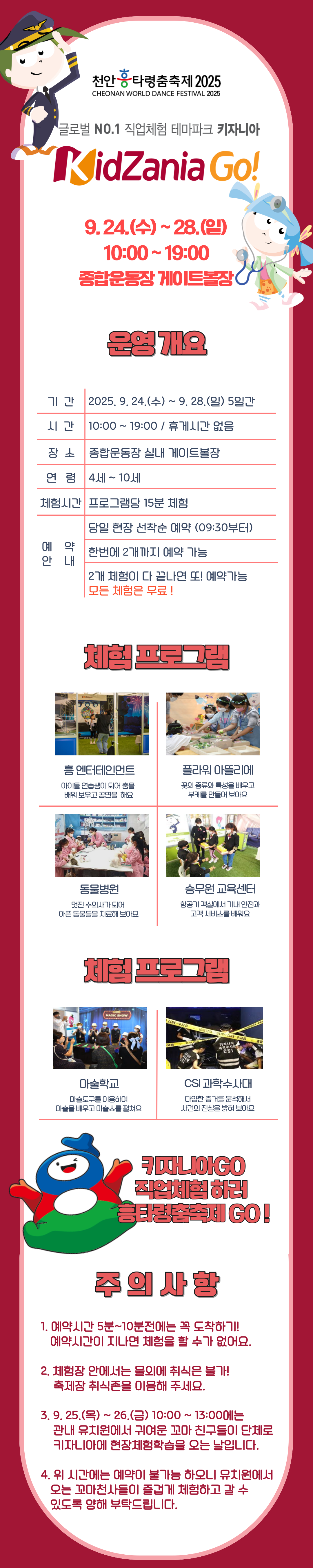 [천안흥타령춤축제 2025] 어린이 직업체험존 키자니아 운영안내